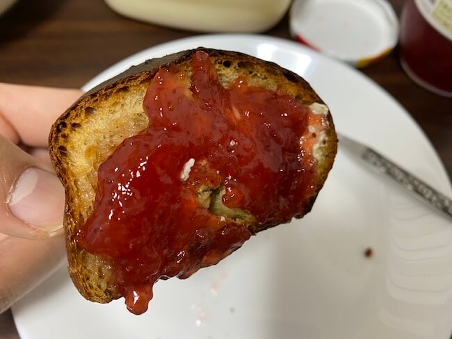レンジやオーブンで加熱するなり、ジャム・ハチミツなどを付けると美味しく食べることが出来ます。