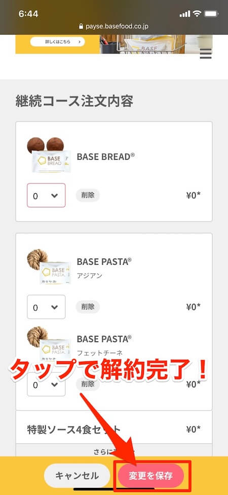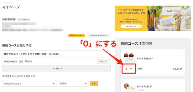 ベースフード継続コースの解約はWEBのマイページで簡単にできます。